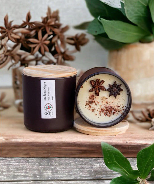 A Vela Madeira Negra possui um aroma amadeirado, firme e aconchegante. Produzida 100% de forma artesanal, combina a pureza da cera de coco com a durabilidade do pavio de algodão. Com queima limpa, não possui parafina nem aditivos nocivos à sua saúde. Feita especialmente pra você com muito cuidado, carinho e amor.